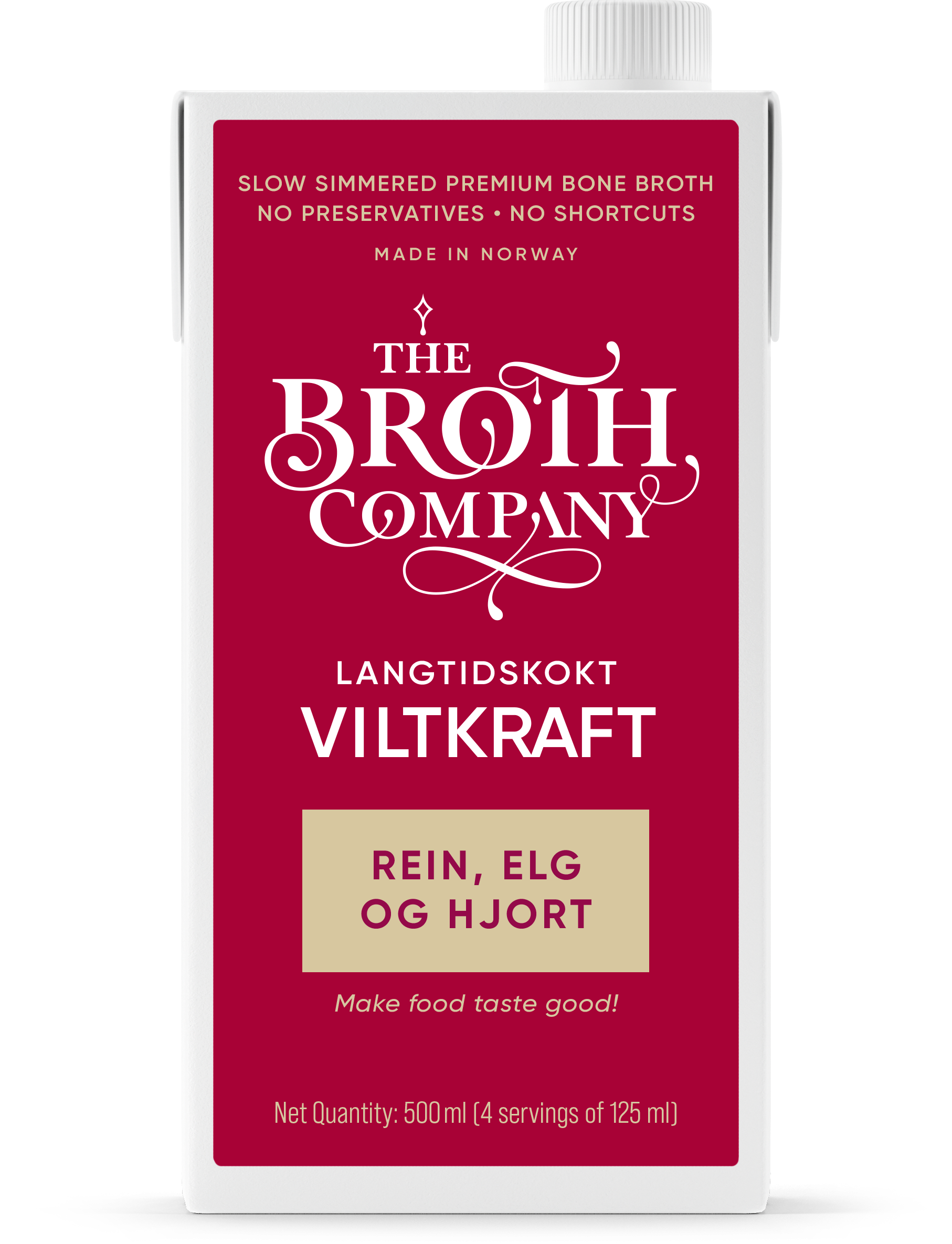 Viltkraften er langtidskokt på ferske, kjøttfulle bein fra både reinsdyr, elg og hjort, samt aromatiske rotgrønnsaker og herlig krydder – nøyaktig slik som en jeger ville gjort det. Smaken er fantastisk og passer like godt i saus til ryper, due og skogsfugl som til rådyr, elg, hjort og reinsdyr. Kraften er også klar til å varmes og drikkes i beste jegertradisjon. Tips til smakssetting finner du under oppskrifter. Under produkter finner du ytterligere informasjon om alle produktene våres.